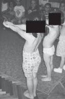 Az egyik kiscsoportban heti egy alkalommal gyógytorna foglalkozásban részesülnek a gyerekek (32 fő), közülük 20 főt vizsgáltam meg első alkalommal a gyógytorna foglalkozás előttMatthiass teszttel. A Matthiass teszt egy provokáló teszt, ami alatt mindkét kart mellső középtartásban 30 másodpercig kell megtartani.(4. kép)